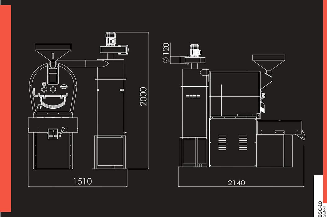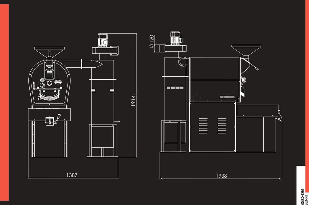 - 1時間当たりの最大焙煎量 - 24Kg~36Kg